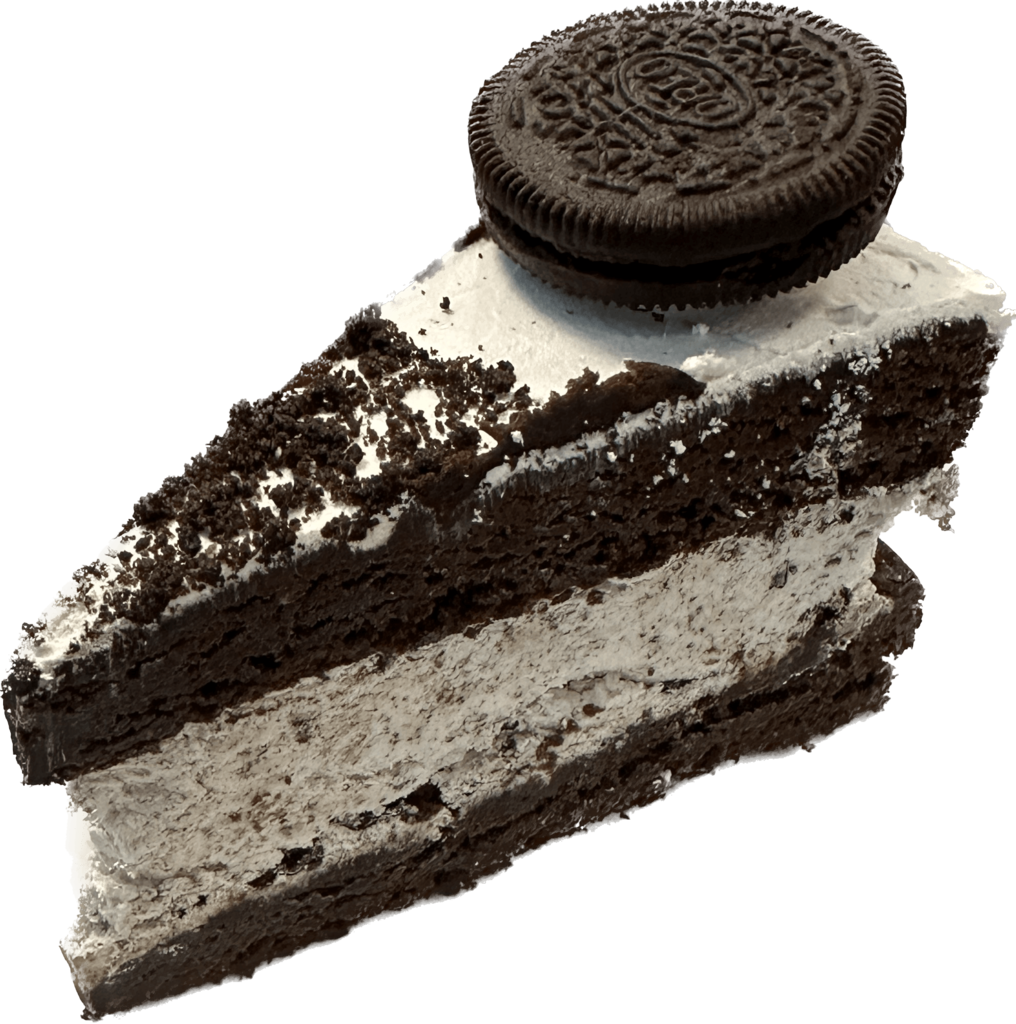 Oreotaart bestaande uit pure chocolade cake met een vulling van witte crème en Oreo stukjes. Afgewerkt met echte Oreo's