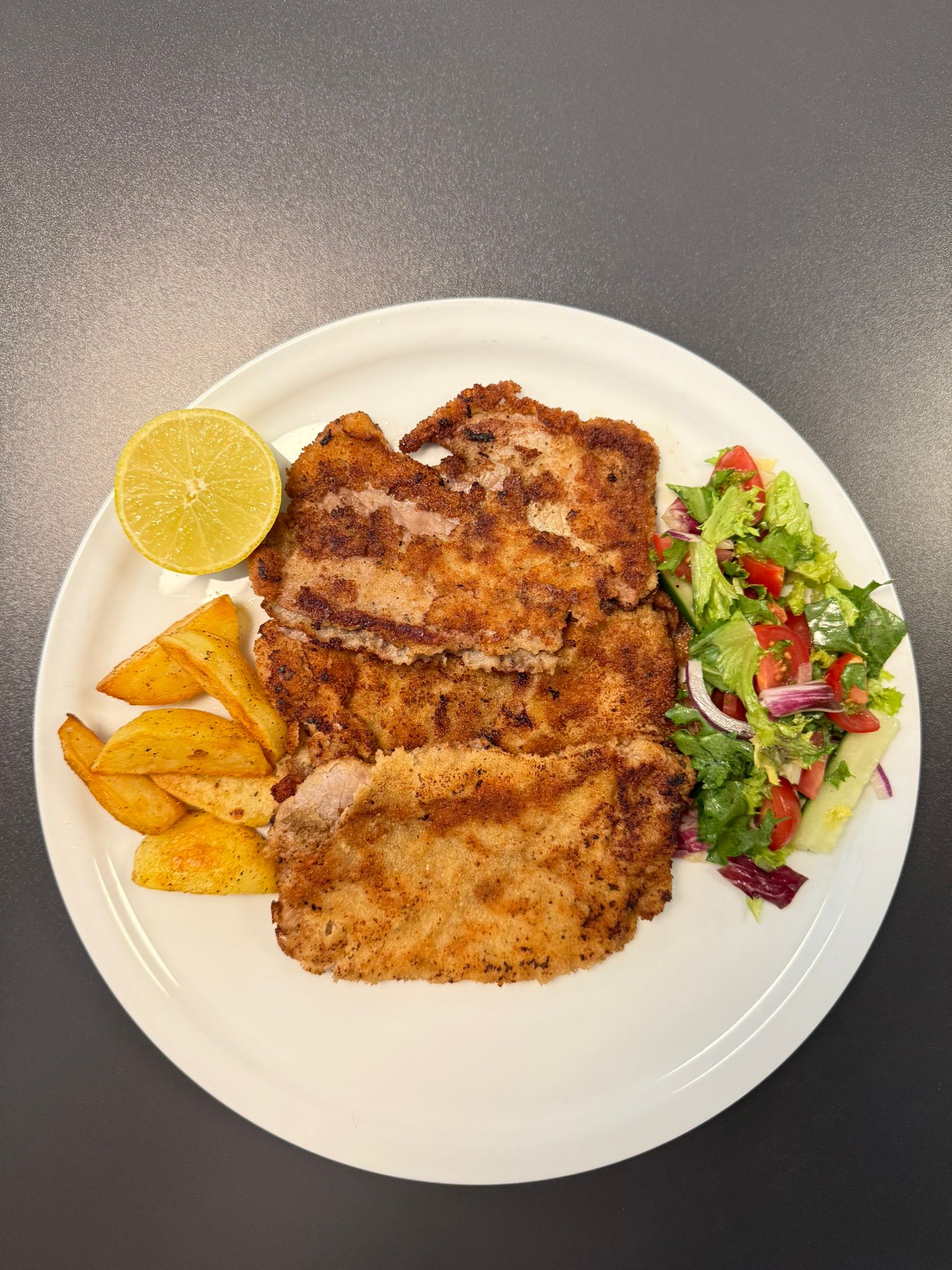 De Italiaanse schnitzel met malse plakjes kalfsvlees en een schijfje citroen. Smelt als boter in de mond.