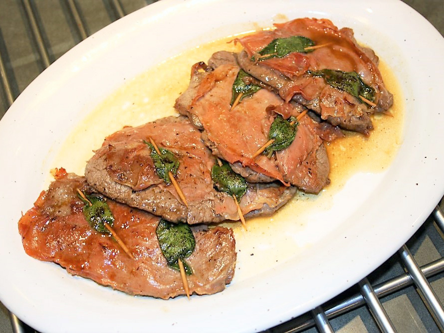 Dunne plakjes kalfsvlees bereid in een heerlijke saus van witte wijn (alcoholvrij) en roomboter. Letterlijk vertaald: springt in de mond